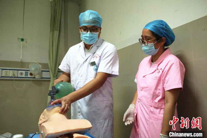 参加完表扬大会后,黄长裕立刻回到工作岗位,给科室年资较低的同事进行急救技能培训。黄长裕轮流演示除颤、心肺复苏、气管插管、止血包扎和脊柱骨折固定与搬运等项目,然后根据同事操练及时指出问题。