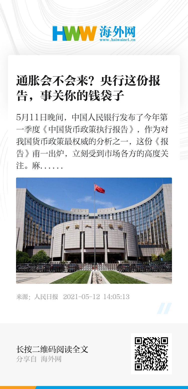 《报告》分析认为,当前,我国物价走势总体稳定,不存在长期通胀或通缩的基础。一季度,局部地区冬春疫情反复一定程度上影响了居民服务业消费复苏,加之高基数和春节错位等短期因素扰动,我国CPI涨幅在零附近运行,3月份由负转正至0.4%,4月份为0.9%。未来CPI总体平稳,保持在合理区间运行。与此同时,国内需求稳定恢复、国际油价等大宗商品价格上涨,带动工业品价格走升,PPI同比涨幅扩大。叠加低基数影响,年内PPI将阶段性走高,未来随着基数效应消退、供给逐步恢复,PPI有望趋稳。中长期看,我国经济运行平稳向好,总供求基本平衡,货币政策保持稳健,货币条件合理适度,不存在长期通胀或通缩的基础。(人民日报客户端 吴秋余)