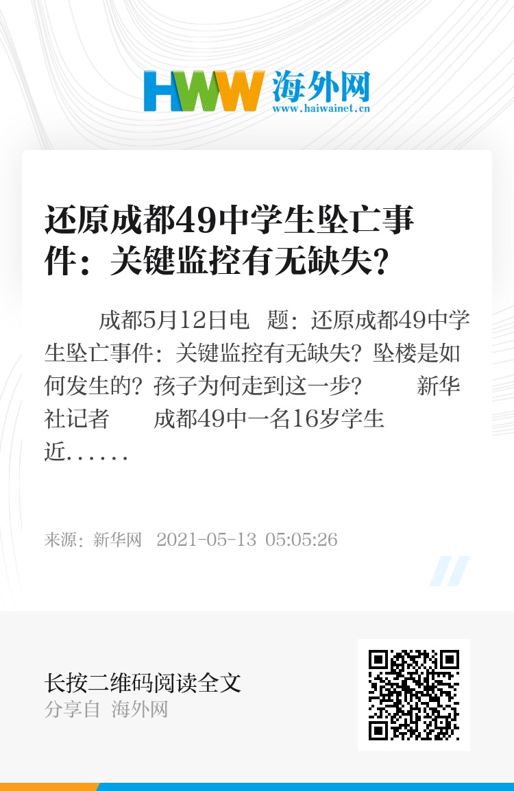 新华社成都5月12日电 题:还原成都49中学生坠亡事件:关键监控有无缺失?坠楼是如何发生的?孩子为何走到这一步?
