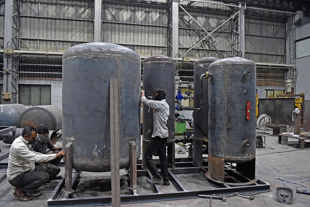 印度累计确诊新冠病例近2400万例 制氧工厂紧张忙碌