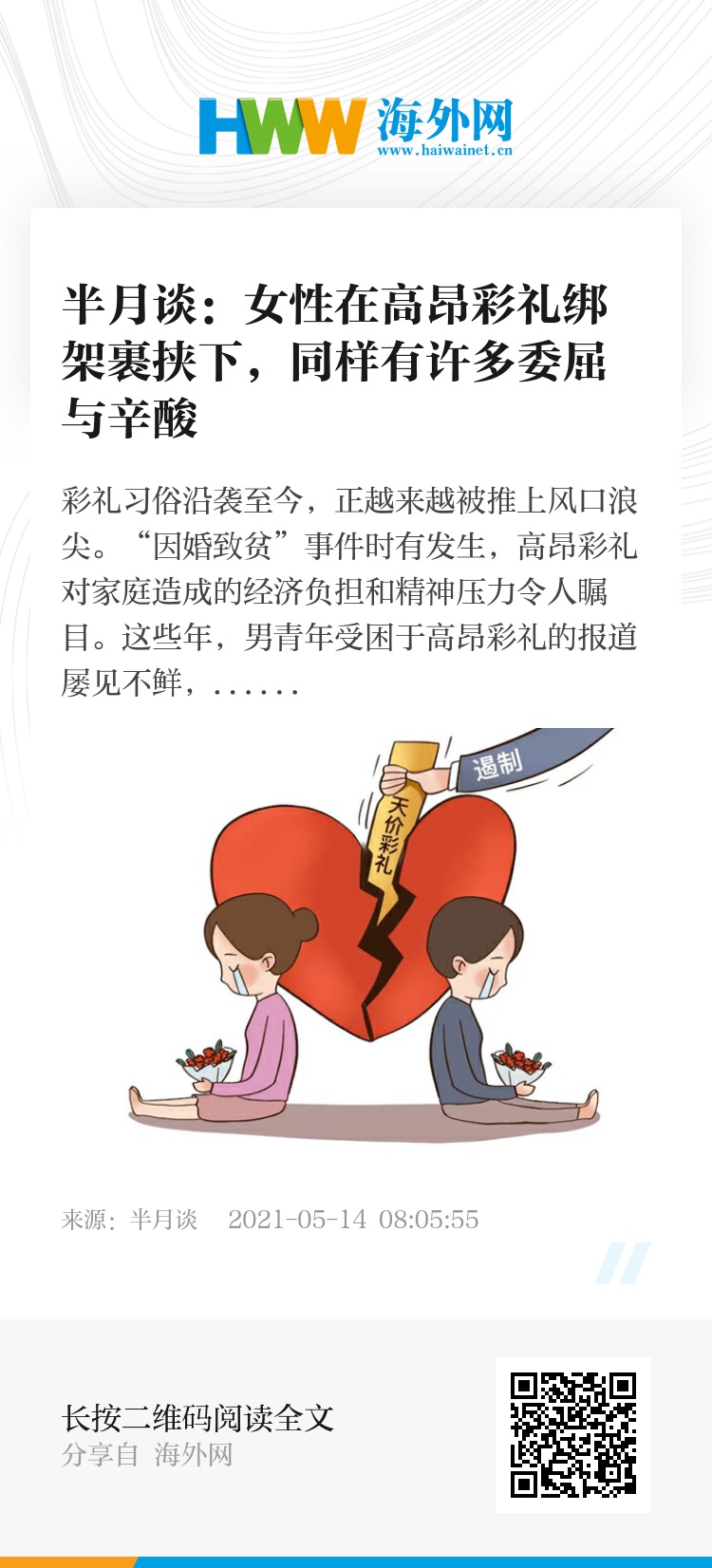 彩礼习俗沿袭至今,正越来越被推上风口浪尖。“因婚致贫”事件时有发生,高昂彩礼对家庭造成的经济负担和精神压力令人瞩目。这些年,男青年受困于高昂彩礼的报道屡见不鲜,其实,不少女性在高昂彩礼的绑架裹挟之下,同样有着许多委屈与辛酸。