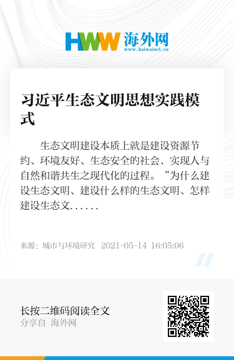生态文明建设本质上就是建设资源节约、环境友好、生态安全的社会,实现人与自然和谐共生之现代化的过程。“为什么建设生态文明、建设什么样的生态文明、怎样建设生态文明、谁来建设生态文明”是习近平生态文明思想的基本问题。习近平生态文明思想是生态文明建设的根本遵循和行动指南,其实践模式着重回答生态文明建设的规范、内容和路径,是践行习近平生态文明思想、指导生态文明建设的结构性和可操作性的方法,是习近平生态文明思想理论与生态文明实践的中介环节,既是习近平生态文明思想不可或缺的重要组成,又是习近平生态文明思想理论与实践结合的关键。