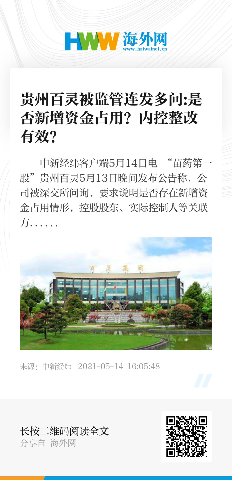 中新经纬客户端5月14日电 “苗药第一股”贵州百灵5月13日晚间发布公告称,公司被深交所问询,要求说明是否存在新增资金占用情形,控股股东、实际控制人等关联方资金周转情况。