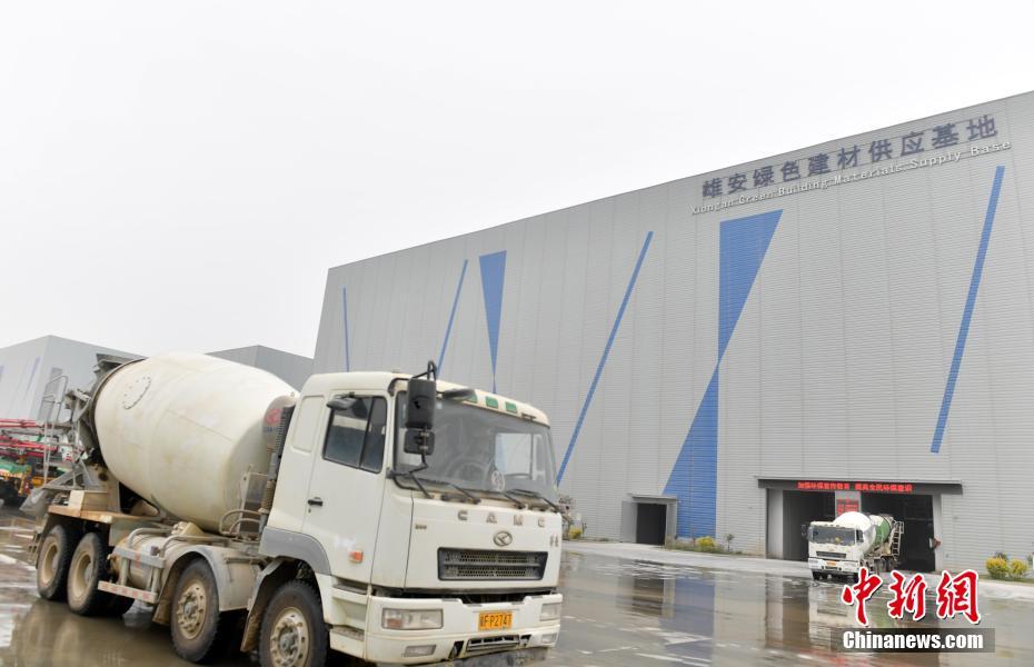 5月13日,一辆辆混凝土罐车、自卸车排队整齐地进入雄安新区容西混凝土搅拌站。据了解,该搅拌站位于雄安新区容城县西北侧,总建筑面积5.1万平方米,共有1座混凝土搅拌站、1座水稳料站以及1座沥青搅拌站,产能可承载新区25%以上建设需求量。图为雄安新区容西混凝土搅拌站现场混凝土罐车正在作业。 中新社记者 韩冰 摄
