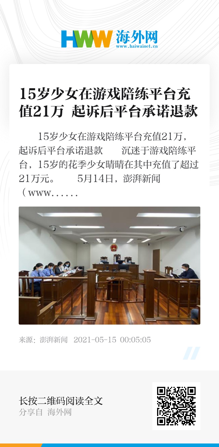 15岁少女在游戏陪练平台充值21万,起诉后平台承诺退款