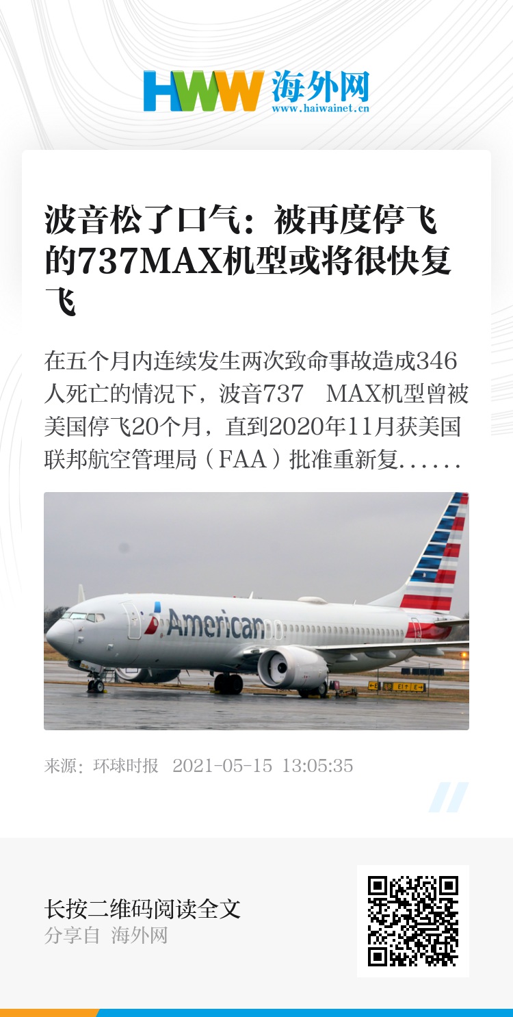 这一声明让很多使用737 MAX飞机的美国航空运营商松了一口气,由于美国在5月下旬进入传统的夏季旅行季节,航空旅行需求增加,这些运营商一直渴望让737 MAX重新投入使用。
