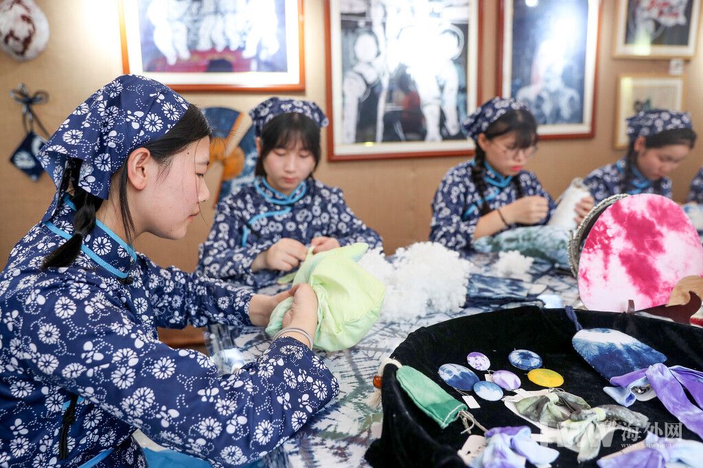 5月14日, 四川省华蓥市以“红心永向党,礼赞新时代”为主题的第十届教育艺术节展演活动在华蓥山广场开幕,来自全市中小学校及幼儿园的1200余名参展学生, 通过现场造纸、蓝染、精书彩绣等特色传统手工艺展示和器乐、歌舞及美术、书法等文艺展演,向市民汇报素质教育所取得的成果,献礼建党100周年。(供图:视觉中国)