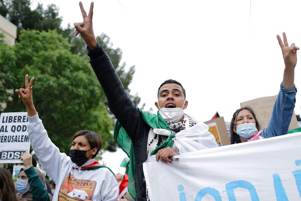 当地时间2021年5月15日,法国蒙彼利埃,当地民众举行声援巴勒斯坦的游行示威活动。图片来源:人民视觉