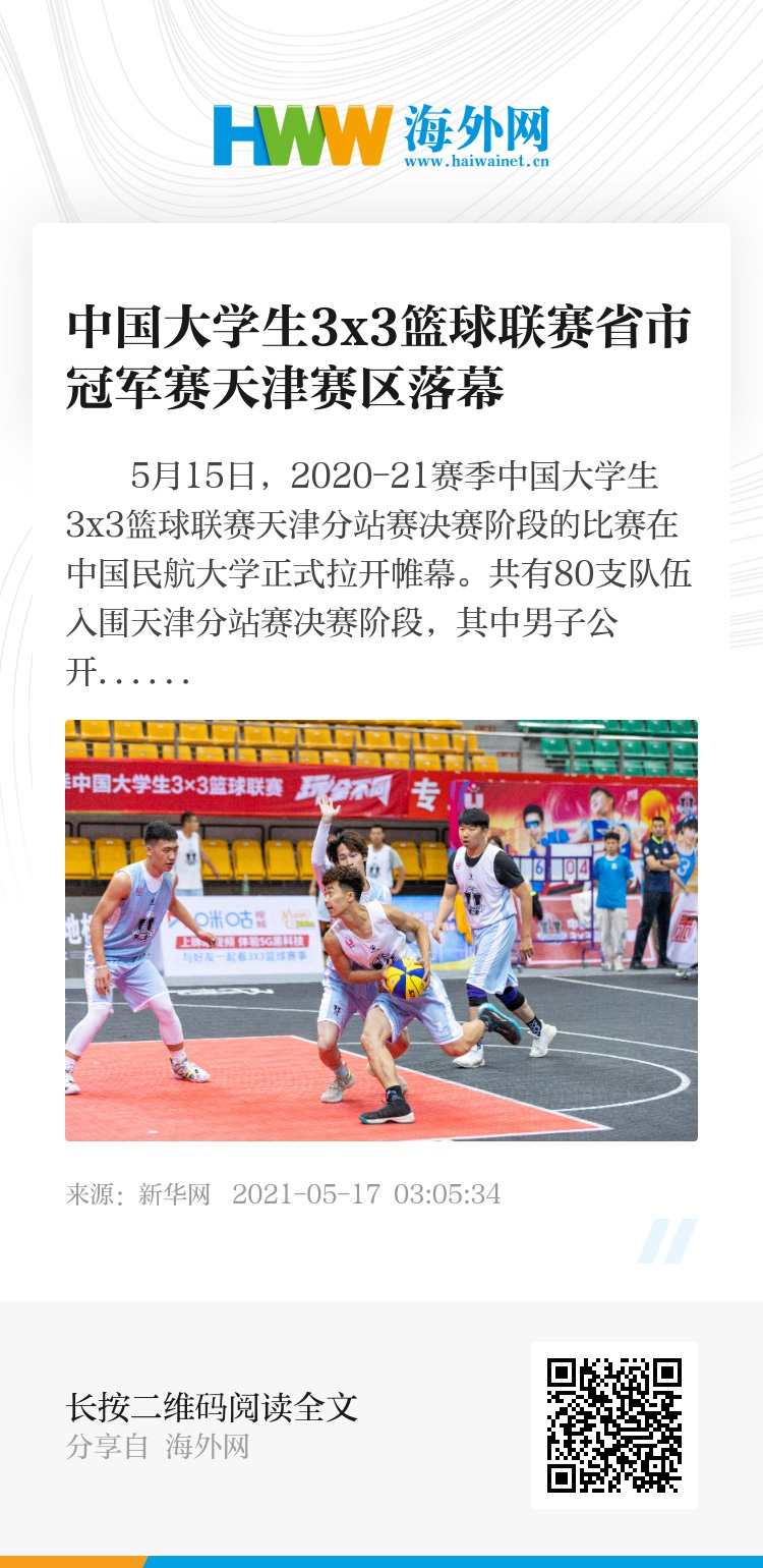 5月15日,2020-21赛季中国大学生3x3篮球联赛天津分站赛决赛阶段的比赛在中国民航大学正式拉开帷幕。共有80支队伍入围天津分站赛决赛阶段,其中男子公开组32支,男子高水平组16支,女子组32支。