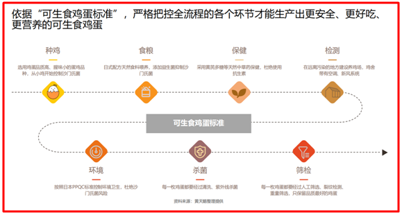 而黄天鹅鸡蛋则是典型的具有“拓新”和“寻源”气质的新品牌。作为最新崛起的中国鸡蛋中高端品牌,黄天鹅鸡蛋引进了“日本38年可生食鸡蛋标准”,并推出了中国首个“可生食鸡蛋”企业标准,引领中国蛋品行业迈向全新的“可生食标准”时代。另外,黄天鹅的“可生食鸡蛋”企业标准从品质源头进行溯源,从种源安全、生物安全、有害生物防治、环境卫生、肠道健康、品质监测、GP中心管理等8大环节进行严格控制,才最终生产出符合“可生食鸡蛋标准”的鸡蛋。可以说,像黄天鹅这样的“新锐品牌”正是代表了新消费时代下消费者对于品牌选择的新方向。