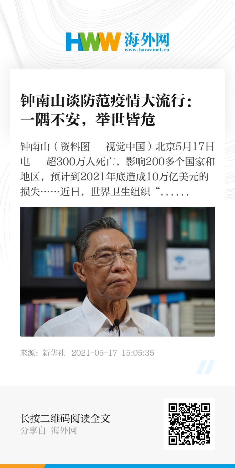 原标题:一隅不安,举世皆危——新华社独家专访钟南山谈世卫“大流行防范和应对独立小组”报告