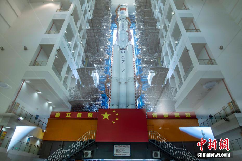 5月16日,据中国载人航天工程办公室消息,天舟二号货运飞船与长征七号遥三运载火箭组合体已转运至发射区。目前,海南文昌航天发射场设施设备状态良好,后续将按计划开展发射前的各项功能检查、联合测试等工作。 中新社记者 骆云飞 摄