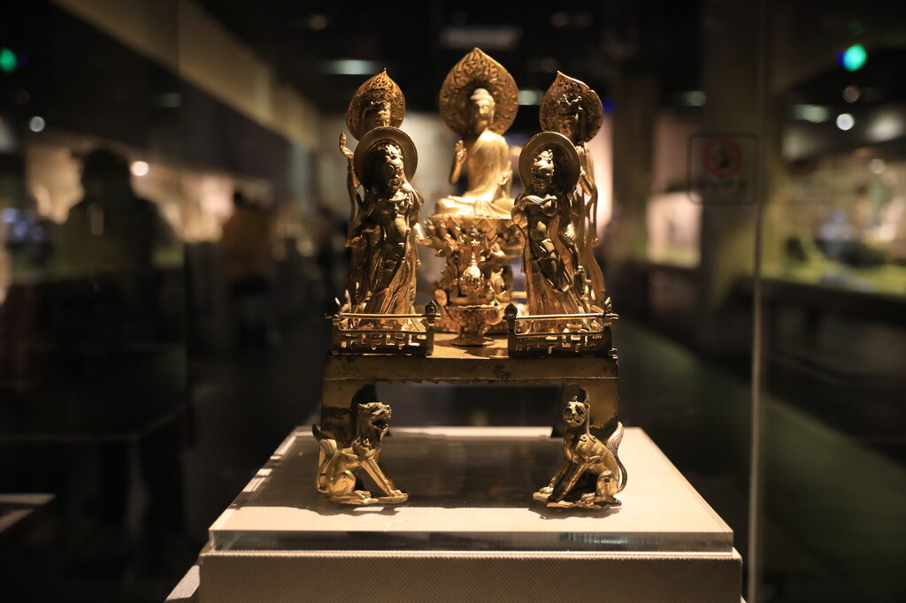2021年2月15日,西安博物院佛造像展吸引着民众和游客参观。佛造像展以佛教石刻造像为主、辅以金铜造像等佛教文物,展出了十六国至清代的佛造像文物120余件组,集中反映长安佛教的空前盛况。其中隋代董钦鎏金造像成为博物院三件国宝级文物之一。