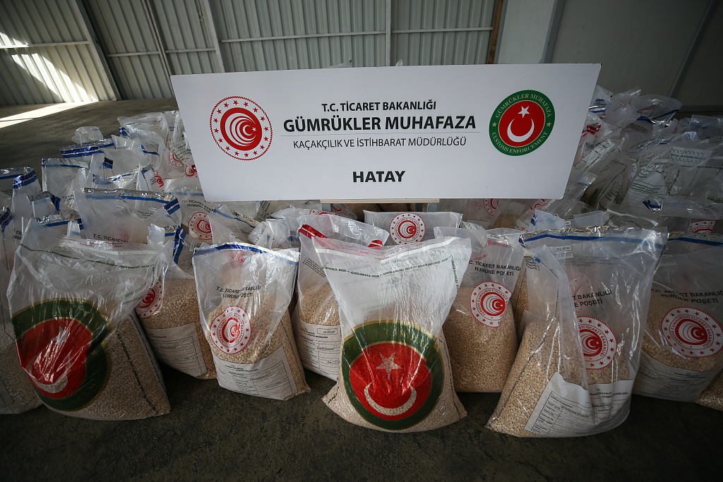 ​当地时间2021年5月17日,土耳其哈塔伊海关工作人员在搜查中缴获了总计超过1000公斤的620万粒毒品。图片来源:人民视觉