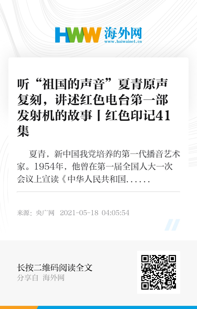 夏青,新中国我党培养的第一代播音艺术家。1954年,他曾在第一届全国人大一次会议上宣读《中华人民共和国宪法》全文;1976年,播出了周恩来追悼大会悼词和毛泽东逝世时的《告全党全军全国各族人民书》;在党的十一届六中全会上,全文宣读了《关于建国以来党的若干历史问题的决议》,被听众誉为“祖国的声音”。