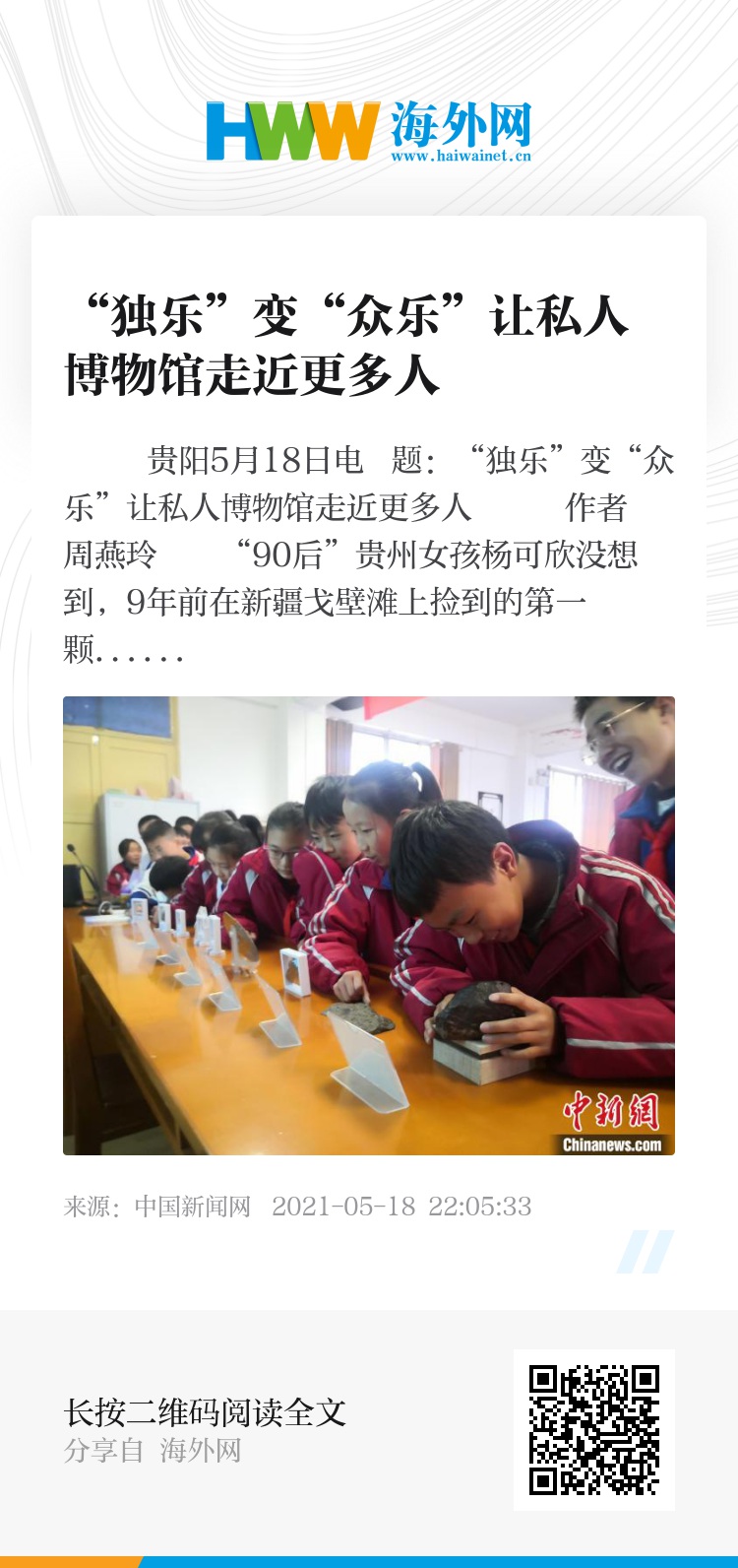 中新网贵阳5月18日电 题:“独乐”变“众乐”让私人博物馆走近更多人