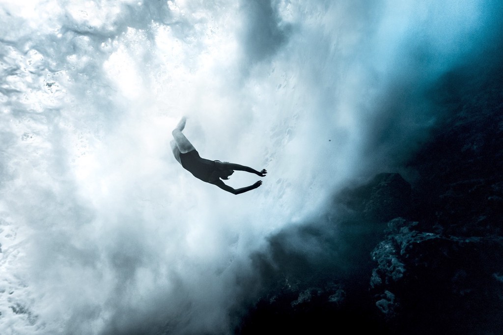 2021年5月报道(具体拍摄时间不详),42岁的Marianne Aventurier在大溪地塔拉瓦奥海中自由潜水,丈夫Alex Voyer为她拍摄了一系列自由潜水大片,不过这些照片却让人产生了错觉,画面中Marianne Aventurier不像是潜水游泳,看起来像是在空中飞翔和跳伞,波涛汹涌的海浪宛如云朵一般。图片来源: catersnews/IC photo