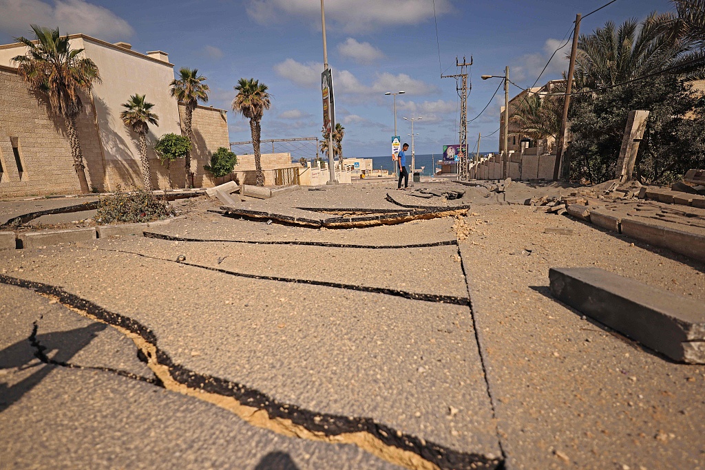 连日遭受袭击 加沙地区道路出现大坑触目惊心
