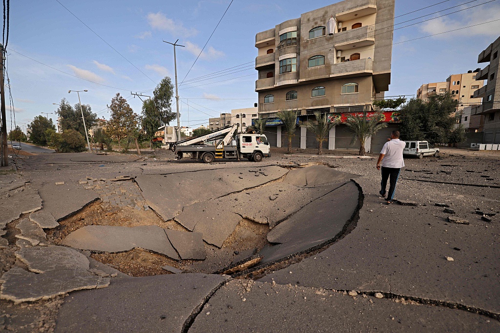 连日遭受袭击 加沙地区道路出现大坑触目惊心