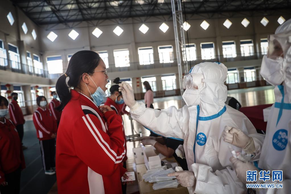 辽宁省营口市统筹推进新冠肺炎疫情防控和经济社会发展工作指挥部5月17日发布第11号令,全市启动三级应急响应,实施二级管控。在鲅鱼圈区全区全员核酸检测的基础上,要在两日内完成全市其他县(市)区全员核酸检测。目前,营口市各县(市) 区全员核酸检测正在有序进行中。新华社记者 潘昱龙 摄