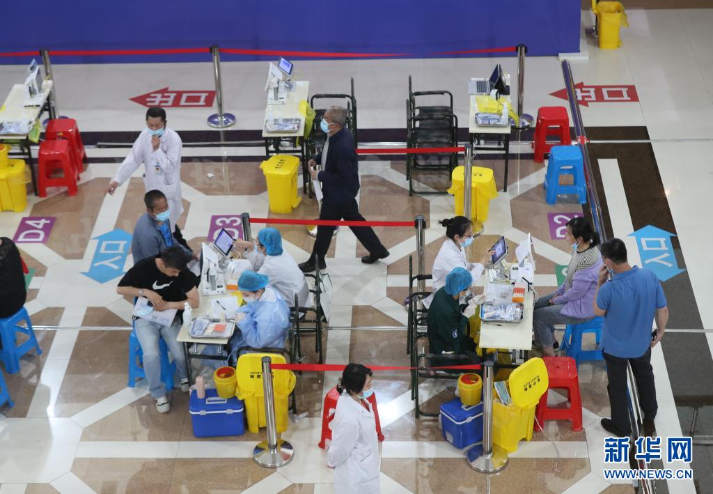 5月18日,市民在沈阳市大东区新冠疫苗接种方舱接种新冠疫苗。近日,辽宁省沈阳市加快适宜人群新冠病毒疫苗接种工作。截至5月17日,沈阳市累计接种新冠疫苗181余万剂,近152万人。新华社记者 杨青 摄