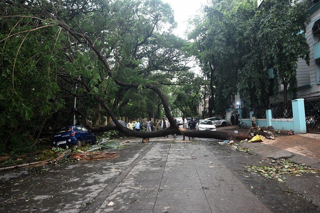台风“陶特”过境 印度孟买市内街道一片狼藉