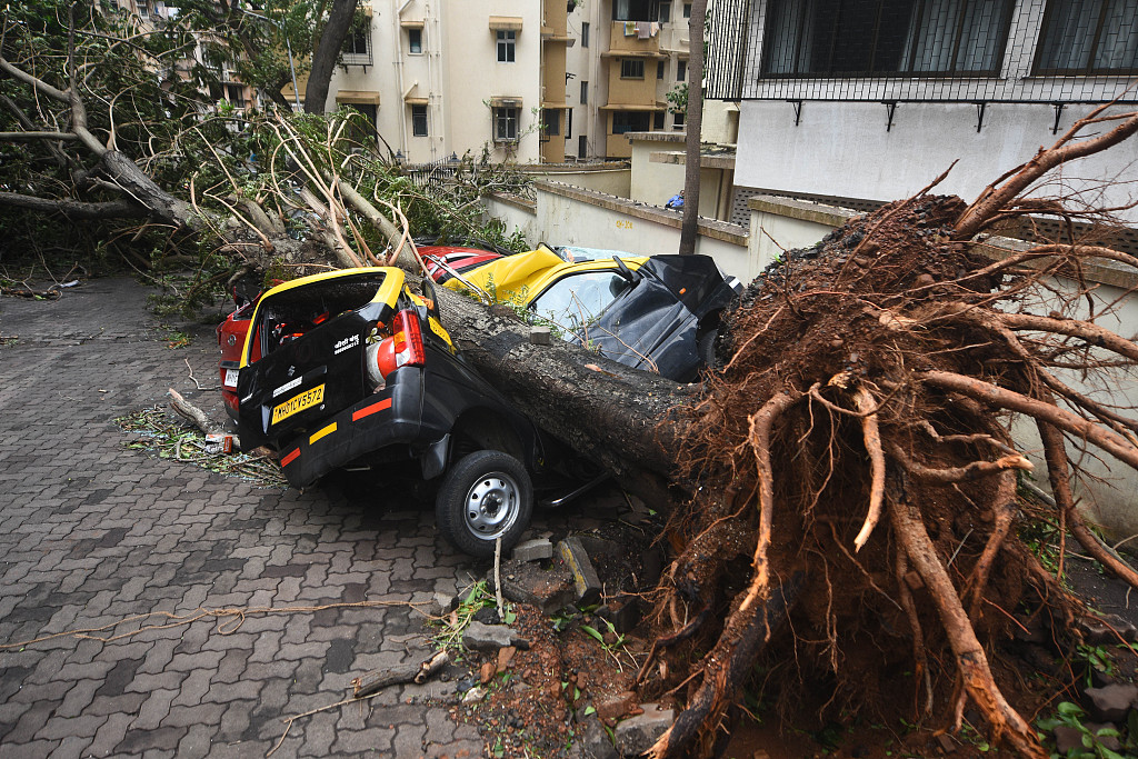 当地时间2021年5月18日,印度孟买,台风“陶特”过境,孟买市内街道一片狼藉。图源:人民视觉