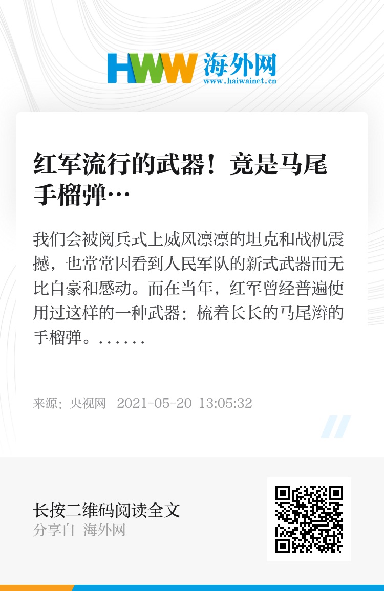 我们会被阅兵式上威风凛凛的坦克和战机震撼,也常常因看到人民军队的新式武器而无比自豪和感动。而在当年,红军曾经普遍使用过这样的一种武器:梳着长长的马尾辫的手榴弹。它是中国共产党领导下的人民兵工最早自主制造的弹药。在缺乏先进设备、专业人员的条件下,人民兵工凭着智慧和双手制造了马尾弹,曾经在中央苏区反围剿战争中发挥了重要作用。为什么会是这样的造型?它是怎样被制造出来的?在它的背后,又是怎样一段故事?今晚22:25央视财经频道《红色财经·信物百年》百集微纪录片第七集,兵器工业集团为您讲述“马尾手榴弹”的故事,敬请关注!