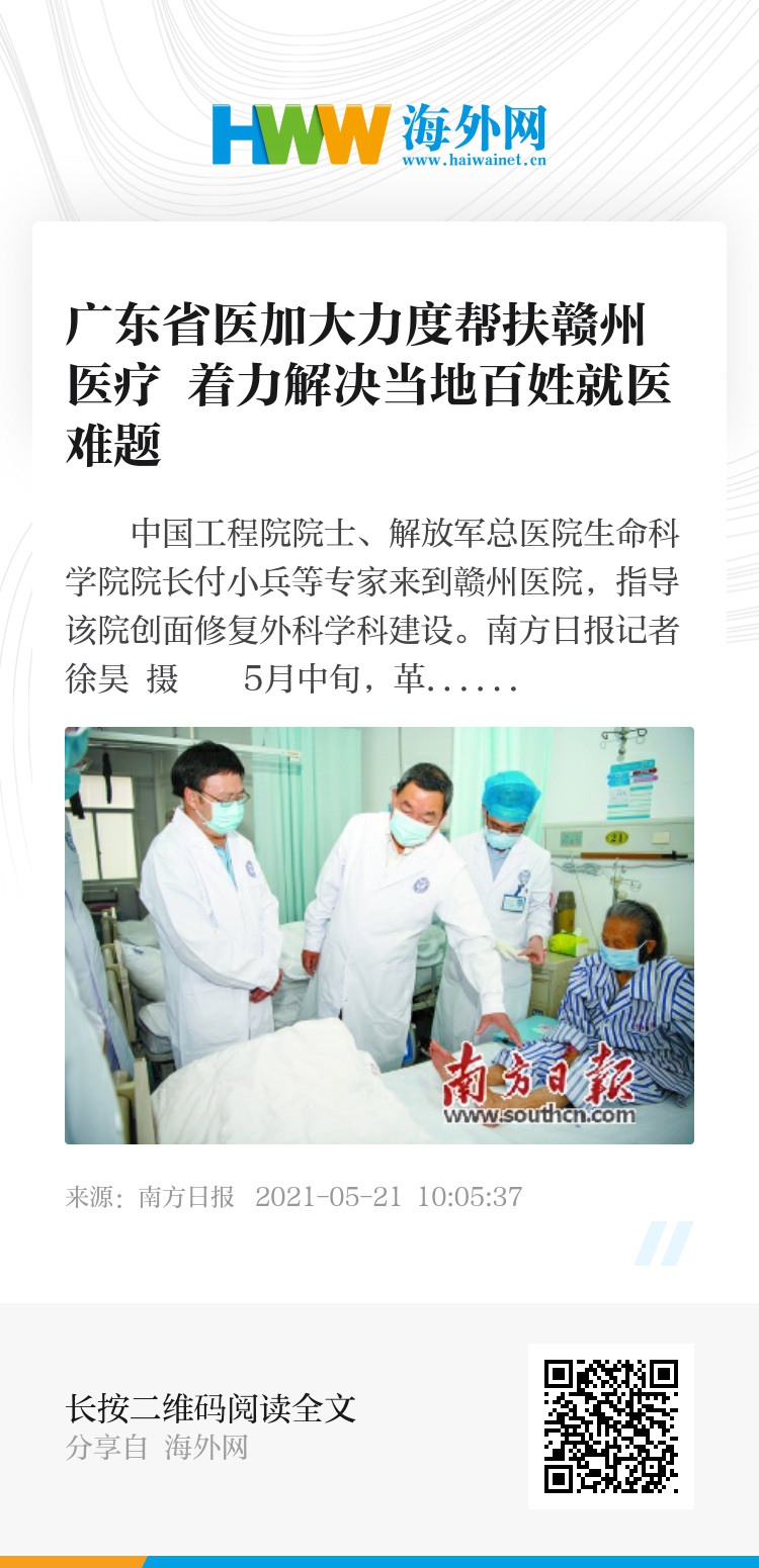 “作为广东的高水平医院,不仅要把自己建设好,支持边疆边远地区和革命老区医疗卫生事业的发展也是我们的责任。”余学清说,省医对此可谓“不计成本”。