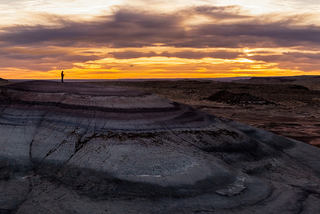 美国犹他州,当地膨土岩地貌令探险者相形见绌,看起来就像是置身火星一般。这些航拍照片展示了其独特的山脉和颜色。53岁的业余摄影师James Bian表示,当他和朋友们拍下这些照片时(具体拍摄时间不详),感觉自己正在探索“火星”。图片来源:James Bian/Solent News/视觉中国