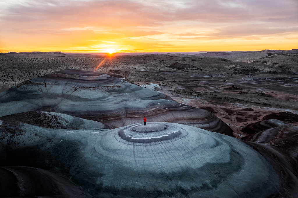 美国犹他州,当地膨土岩地貌令探险者相形见绌,看起来就像是置身火星一般。这些航拍照片展示了其独特的山脉和颜色。53岁的业余摄影师James Bian表示,当他和朋友们拍下这些照片时(具体拍摄时间不详),感觉自己正在探索“火星”。图片来源:James Bian/Solent News/视觉中国