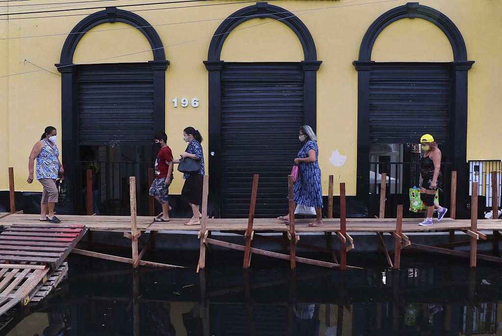 当地时间2021年5月20日,巴西马瑙斯,当地遭遇洪灾,街道被洪水淹没。图片来源:人民视觉