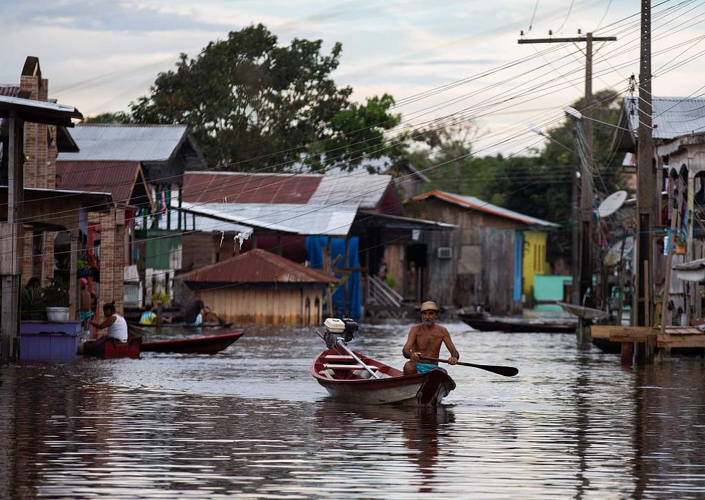当地时间2021年5月20日,巴西马瑙斯,当地遭遇洪灾,街道被洪水淹没。图片来源:人民视觉