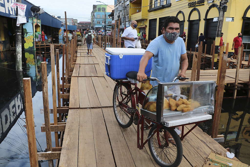 当地时间2021年5月20日,巴西马瑙斯,当地遭遇洪灾,街道被洪水淹没。图片来源:人民视觉