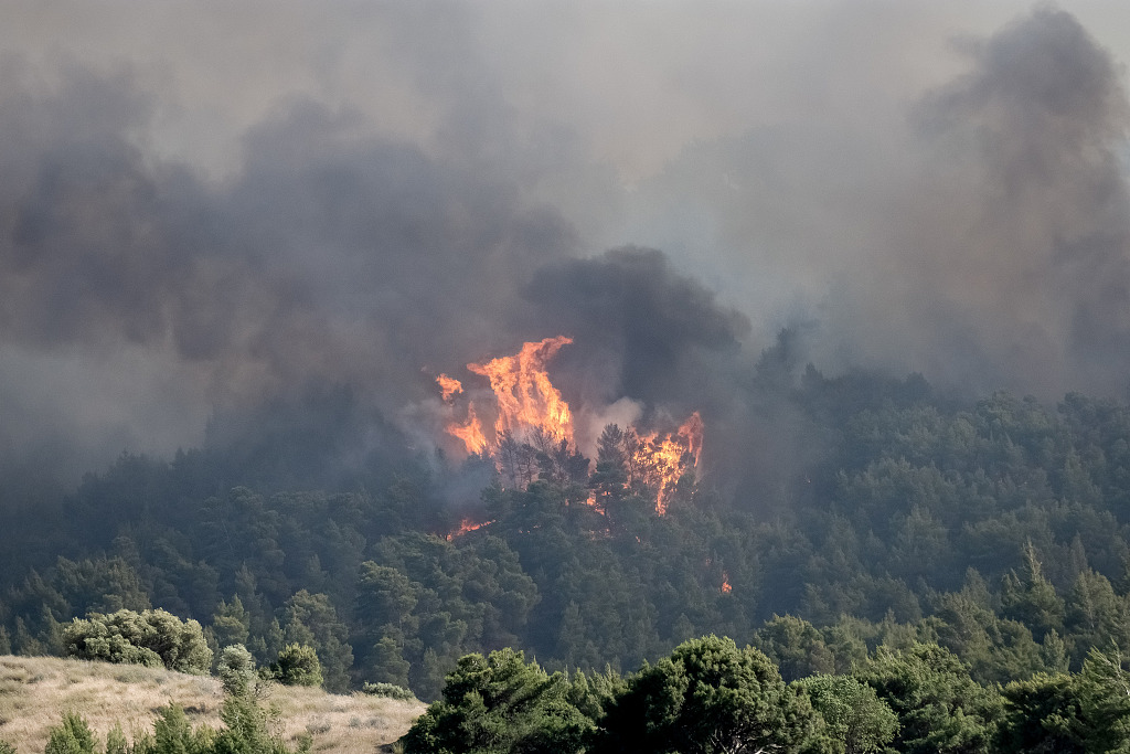 希腊科林斯山火继续蔓延 更多当地民众收到紧急撤离警报