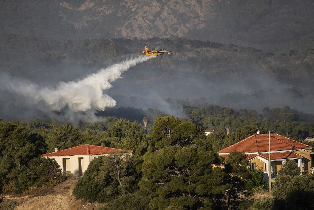 希腊科林斯山火蔓延 消防飞机出动进行灭火