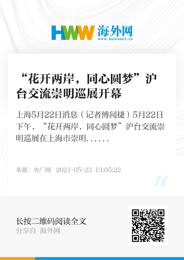 据悉,崇明篇展览前后历经6个多月筹备,以“花开两岸,同心圆梦”为主题,通过9个篇章、22幅精选展板,全方位呈现了崇明30多年来对台交流的缩影,演绎了崇明台湾两地交流“携手追梦、生态筑梦、同心圆梦”的篇章。