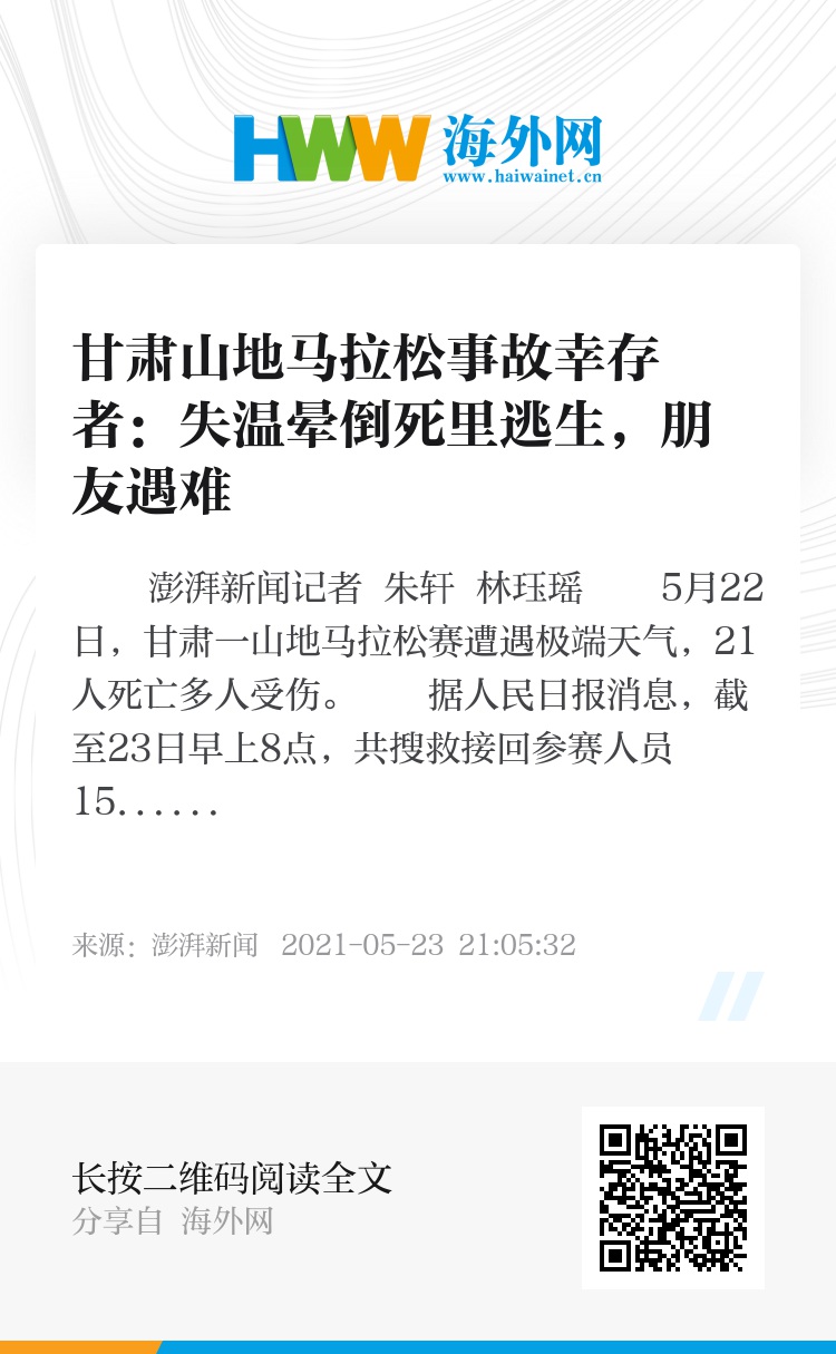 5月22日,甘肃一山地马拉松赛遭遇极端天气,21人死亡多人受伤。