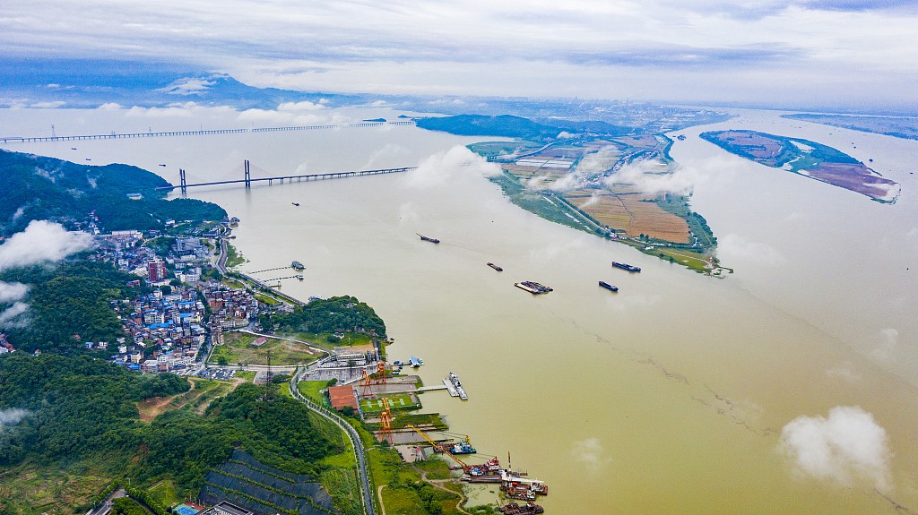 江西湖口:受连续强降雨影响 鄱阳湖和长江水位快速上涨