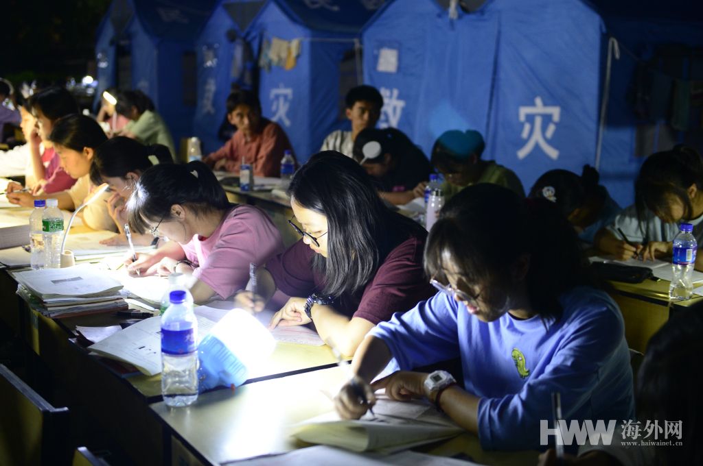 云南地震灾区高三学生帐篷外挑灯夜战复习备考