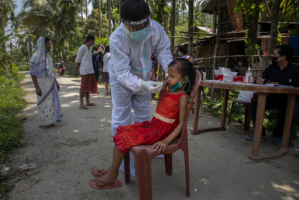印度阿萨姆邦,当地民众接受新冠病毒检测。图片来源:人民视觉