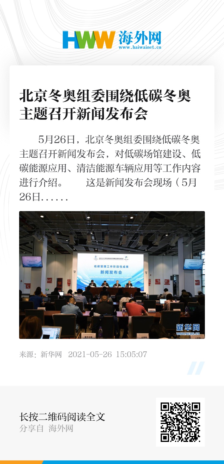 5月26日,北京冬奥组委围绕低碳冬奥主题召开新闻发布会,对低碳场馆建设、低碳能源应用、清洁能源车辆应用等工作内容进行介绍。