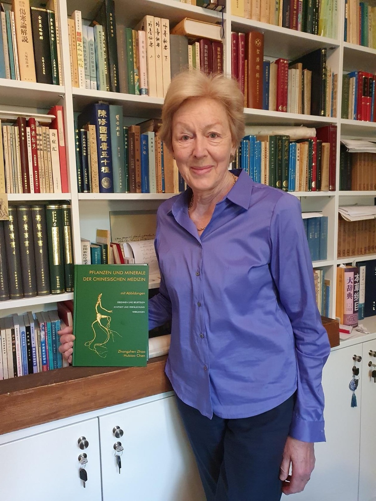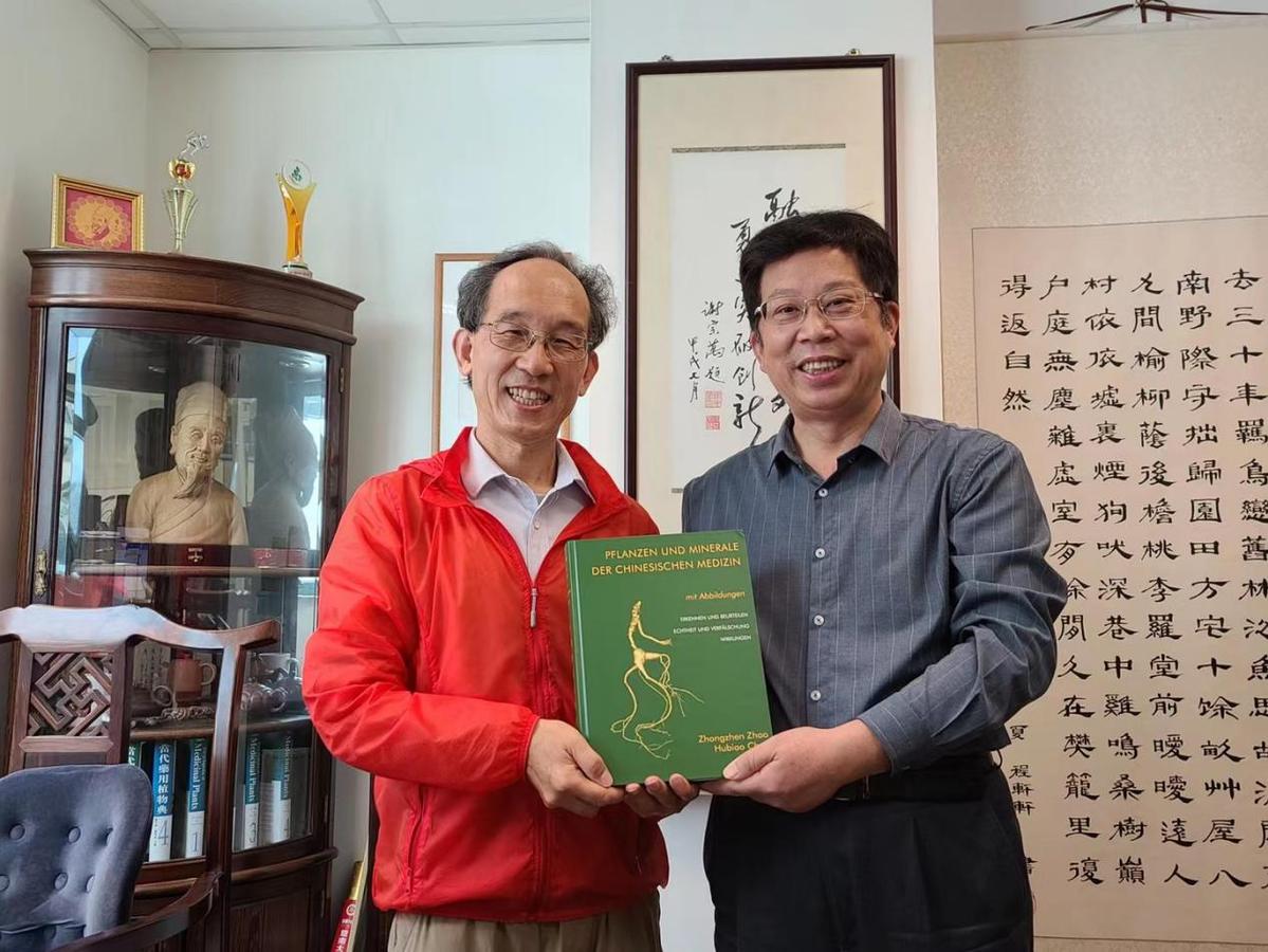 文淑德女士与她翻译的德文版《中药材鉴定图典》 《中药材鉴定图典》是由香港浸会大学中医学院赵中振、陈虎彪教授共同主编而成,是其研究团队通力合作,三十年的心血之作。本书把传统经验进行现代科学诠释,是对中药的继承与创新,有重要的学术价值、社会价值和文化价值。