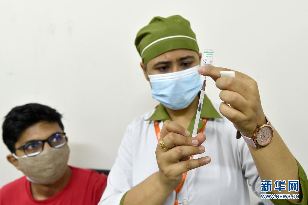 5月25日,医务人员在孟加拉国达卡准备给医学院的学生接种中国国药新冠疫苗。孟加拉国卫生部门25日首次组织当地民众接种中国国药新冠疫苗。首批接种人员约1000人,主要是来自孟加拉国各大医学院校的高年级学生。新华社发