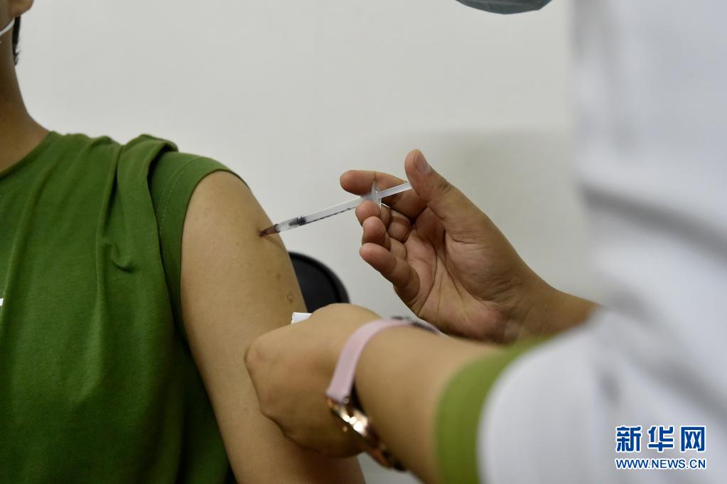 5月25日,医学院的学生在孟加拉国达卡接种中国国药新冠疫苗。孟加拉国卫生部门25日首次组织当地民众接种中国国药新冠疫苗。首批接种人员约1000人,主要是来自孟加拉国各大医学院校的高年级学生。新华社发