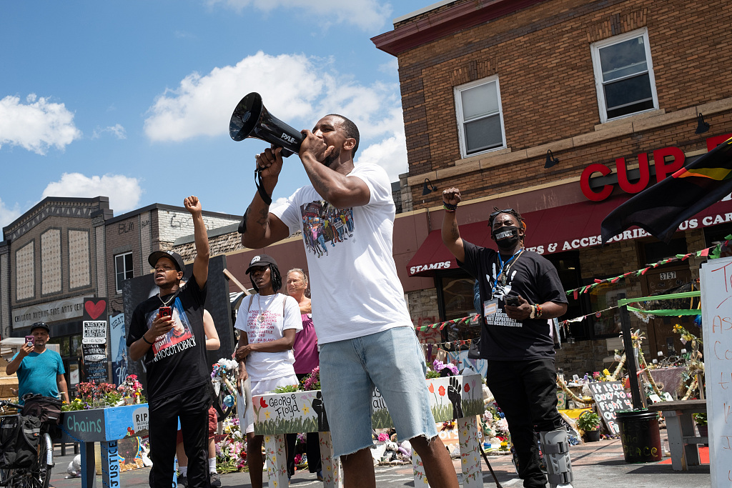 据福克斯新闻旗下当地KMSP电视台报道,在明尼苏达州州长沃尔兹的提议下,明尼阿波利斯市25日下午1时许进行了长达9分29秒的全城默哀,以此追思弗洛伊德。图片来源:人民视觉