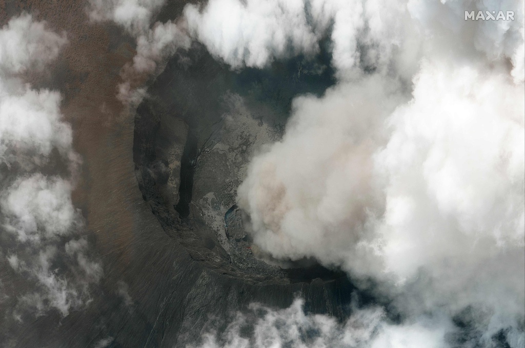 北基伍省民事防护负责人约瑟夫·马昆迪向媒体表示,尼拉贡戈火山喷发直接或间接造成32人死亡,其中9人被烧死,5人死于吸入烟尘或有毒气体,死亡人数可能会继续上升(卫星图像)。图片来源:人民视觉
