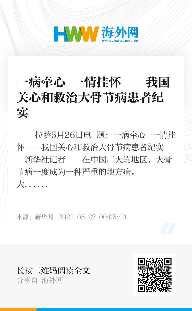 新华社拉萨5月26日电 题:一病牵心 一情挂怀——我国关心和救治大骨节病患者纪实
