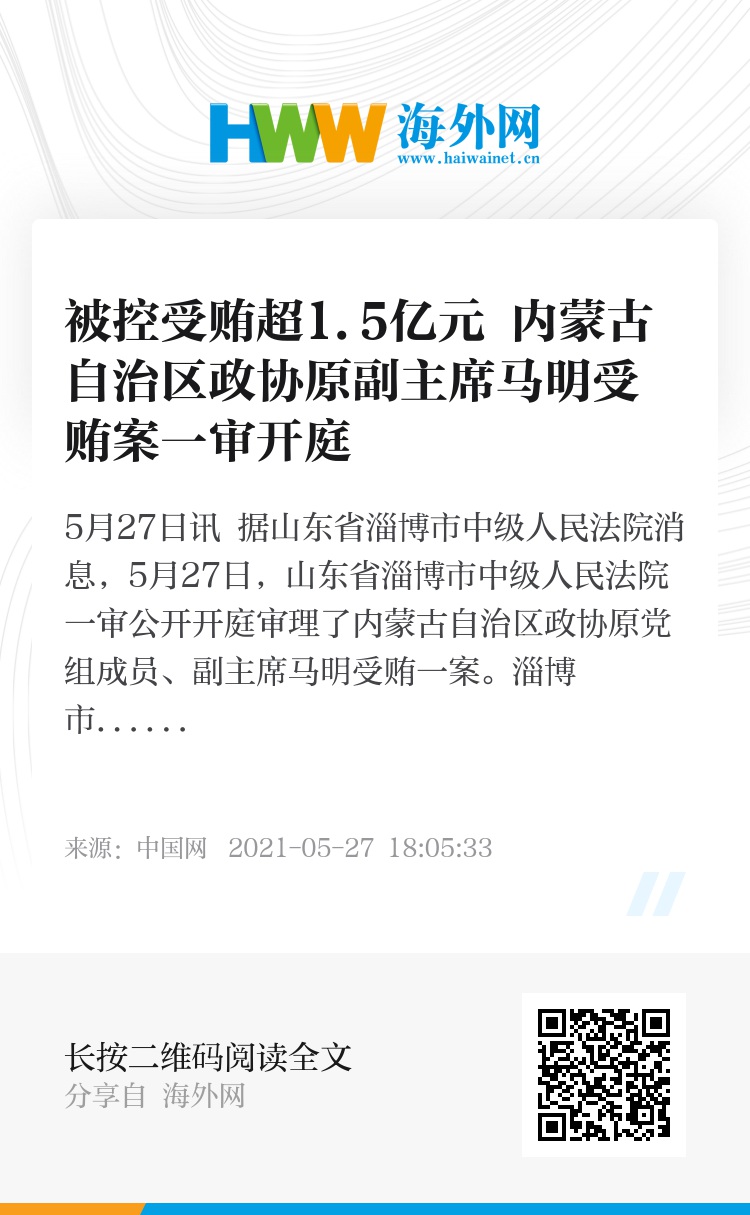 中国网5月27日讯 据山东省淄博市中级人民法院消息,5月27日,山东省淄博市中级人民法院一审公开开庭审理了内蒙古自治区政协原党组成员、副主席马明受贿一案。淄博市人民检察院派员出庭支持公诉,被告人马明及其辩护人到庭参加诉讼。