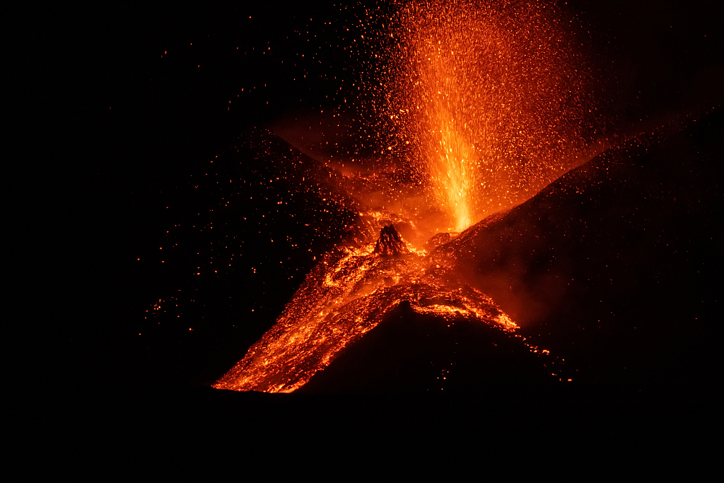 意大利埃特纳火山持续喷发 熔岩涌出如同喷泉